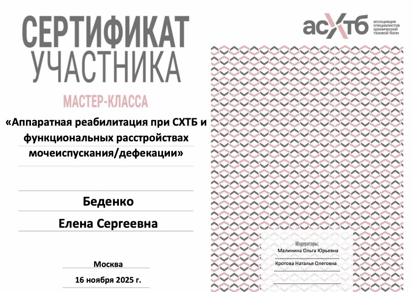 Аппаратная реабилитация при СХТБ и функциональных расстройствах мочеиспускания/дефекации