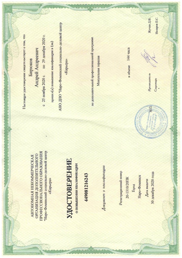 АНО ДПО "Наро-Фоминский институт "Карьера" Повышение квалификации "Мануальная терапия"
