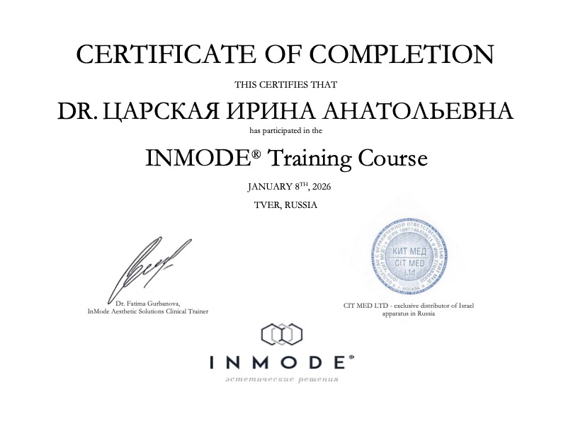 Сертификат о прохождении обучения на аппарате INMODE