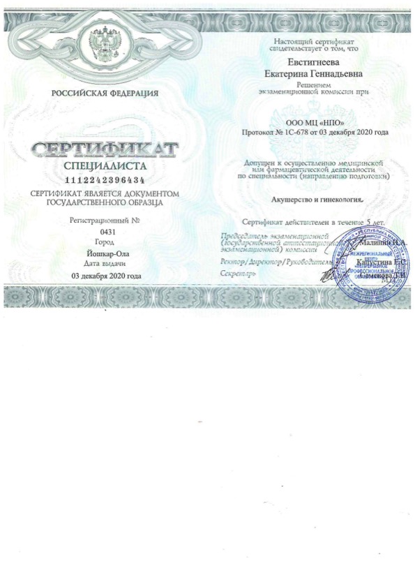 Сертификат специалиста "Акушерство и гинекология"