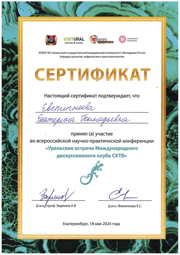Сертификат "Уральские встречи международного дискуссионного клуба СХТБ"