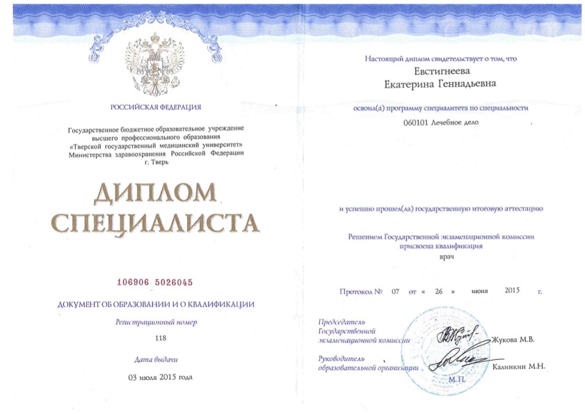 Диплом специалиста "Лечебное дело"