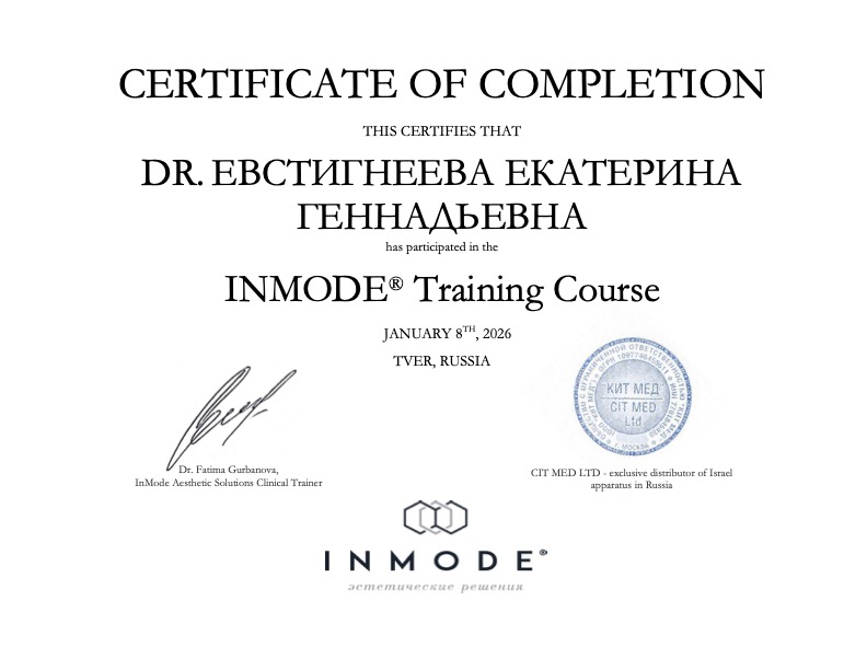 Сертификат о прохождении обучения на аппарате INMODE
